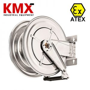 El Carrete Retráctil de Acero inoxidable norma antiexplosiva es ideal para aplicaciones en atmósferas peligrosas, como por ejemplo en estaciones Aeronáuticas, bases militares, transporte de combustible o carros que transfieren materiales inflamables.